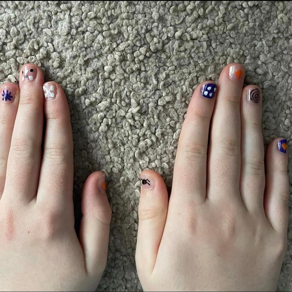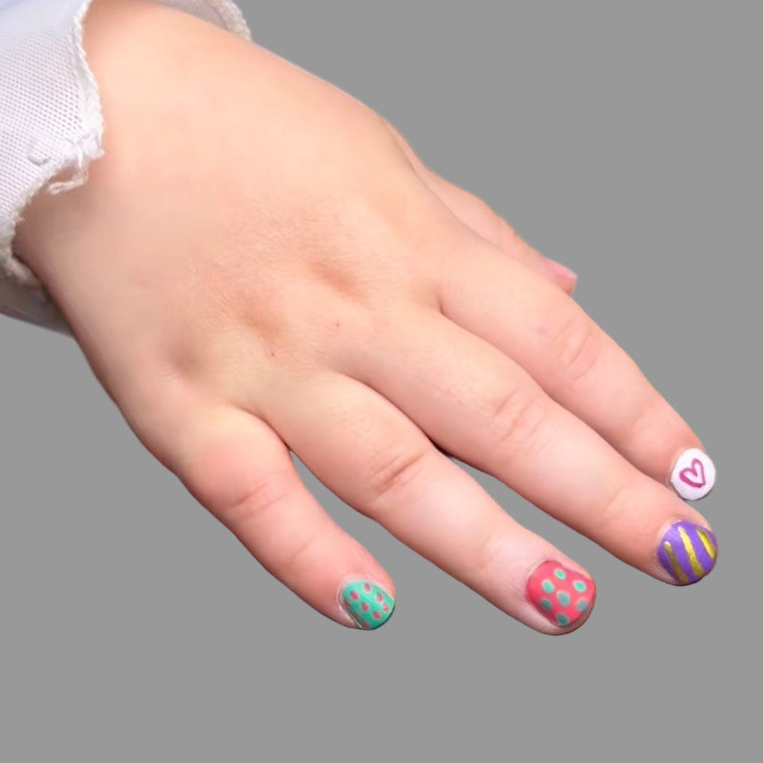 Je les ai achetés pour ma fille pour Noël et ils sont excellents. Facile à ranger et très facile à utiliser comme un stylo normal. Le stylo est resté sur ses ongles pendant un bon moment, mais il était également facile à nettoyer.